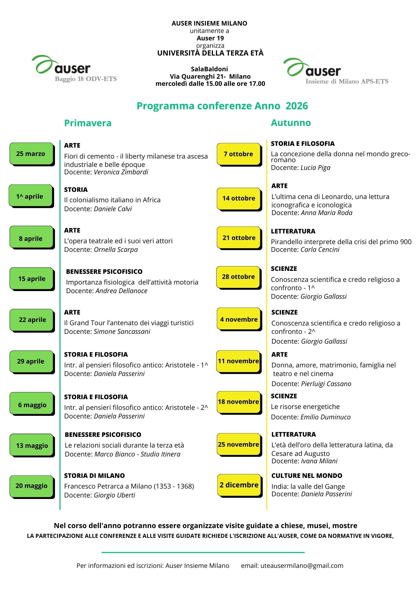 Municipio 7: Sala degli Olivetani - Via A. Da Baggio 55 - MilanoPer informazioni e iscrizioni: Auser Insieme Milano - tel. 02.26826320 dalle 9 alle 12 dal lunedì al venerdì