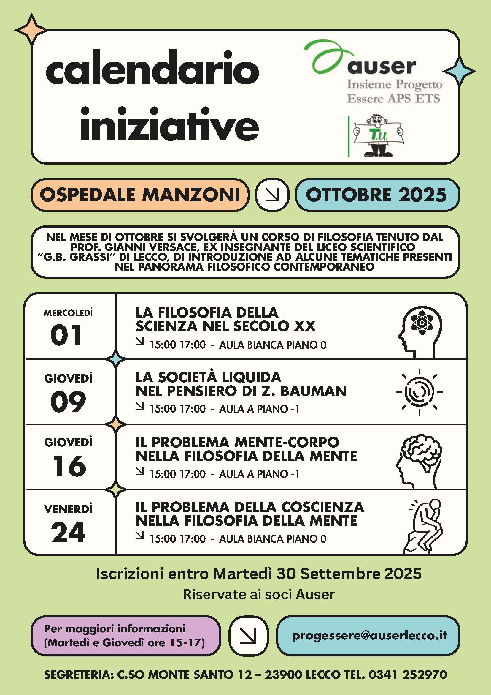 Lunedì 29 settembre 2025 alle ore 14.30 presso l’aula Cbis, al piano -1 dell’Ospedale A. Manzoni di Lecco, conferenza  con Simona Bartolena