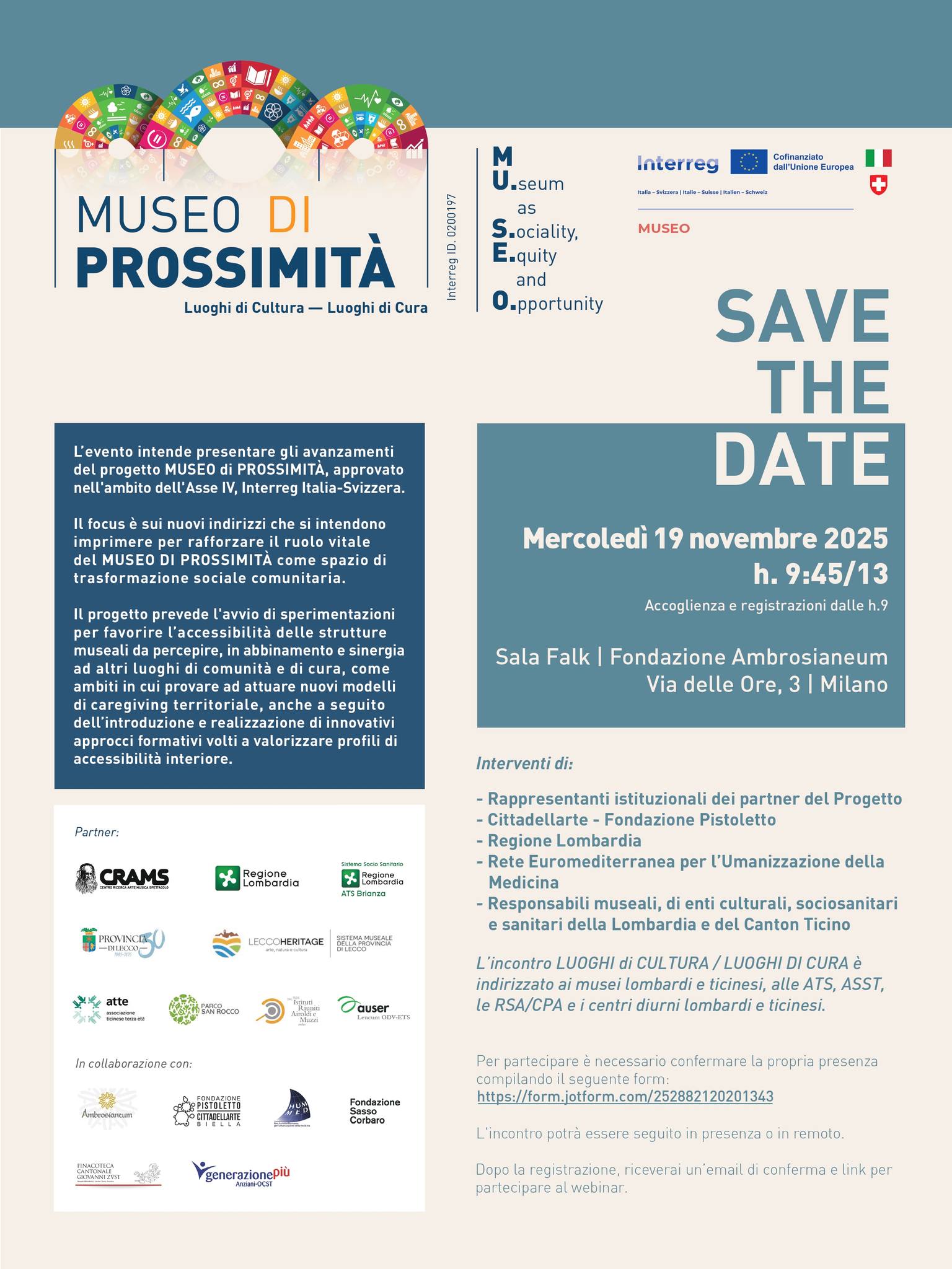 13.00 Sala Falk – Fondazione Ambrosianeum Via delle Ore, 3 – MILANO sul tema: “Musei di prossimità: luoghi di cultura, luoghi di cura”