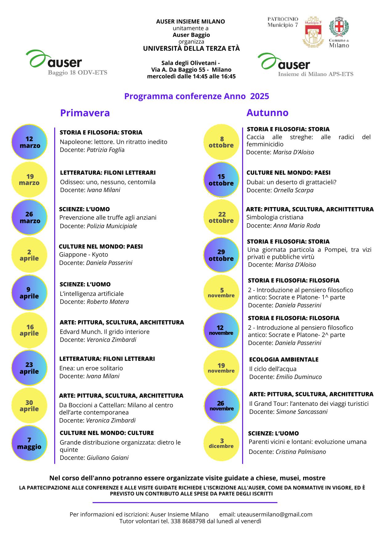 Per informazioni ed iscrizioni: Auser Insieme Milano